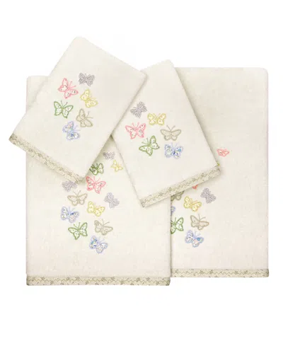 Spring Butterflies Embroidered Luxury 100% Turkish Cotton Hand Towel Set, 30" X 16" In Sand