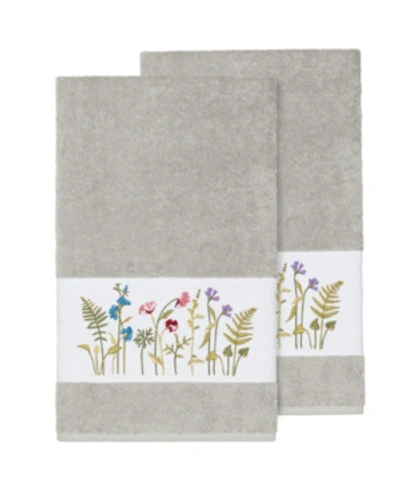 Turkish Cotton Penelope Embellished 2-pc. Bath Towel Set In Light Gray
