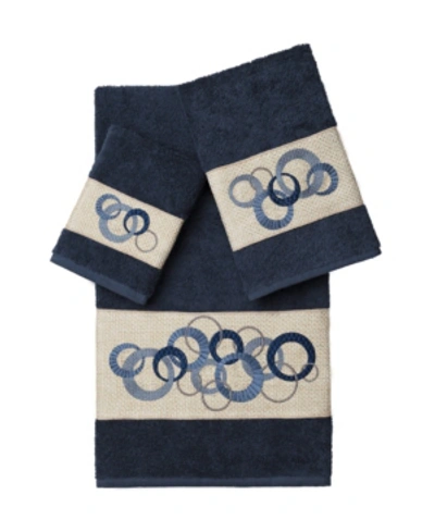 Turkish Cotton Penelope Embellished 3-pc. Bath Towel Set In Navy
