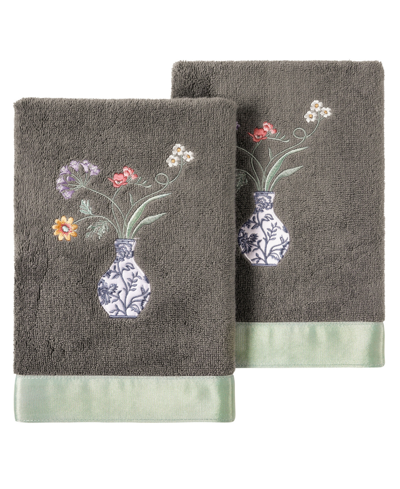 Turkish Cotton Stella Embellished 2-pc. Hand Towel Set In Charcoal