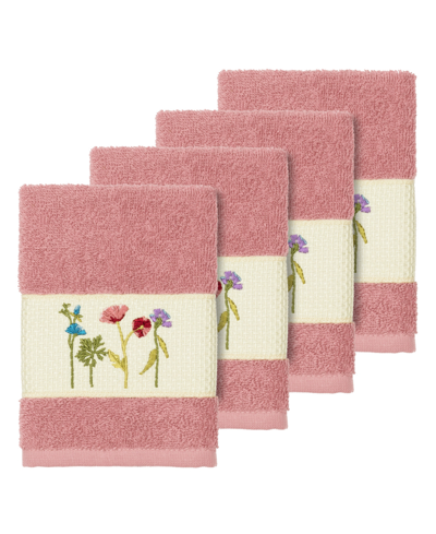 Turkish Cotton Serenity 4-pc. Embellished Washcloth Set In Tea Rose