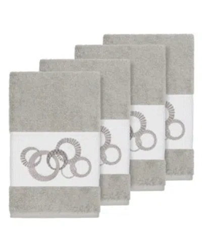 Turkish Cotton Serenity 4-pc. Embellished Hand Towel Set In Light Grey