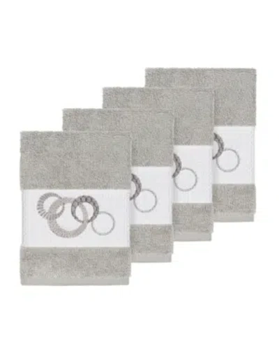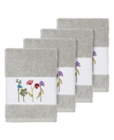 Turkish Cotton Annabelle 4-pc. Embellished Washcloth Set In Light Grey