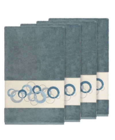 Turkish Cotton Annabelle 4-pc. Embellished Hand Towel Set In Teal