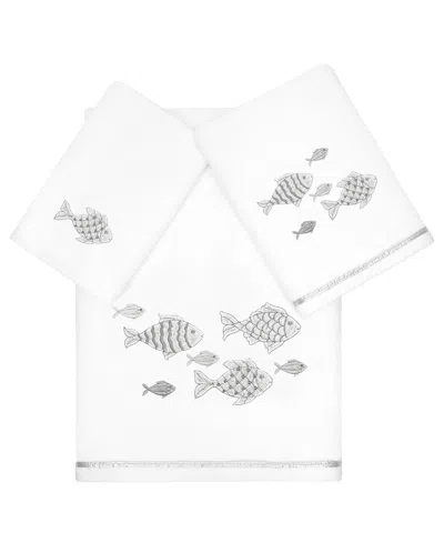 Turkish Cotton Figi Embellished 3-pc. Bath Towel Set In White