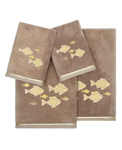 Turkish Cotton Botanica Embellished 3-pc. Bath Towel Set In Cocoa