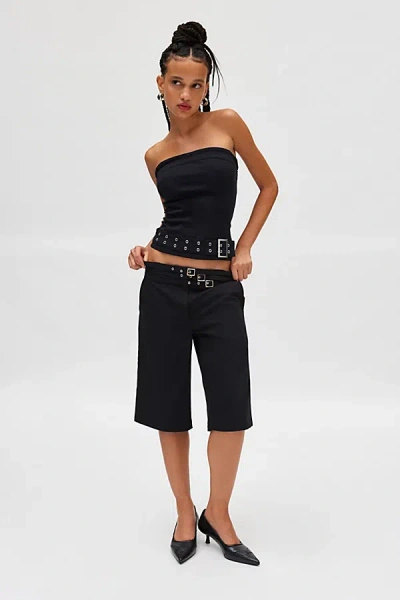 Backstage Belted Low Rise Jort In Black, Women's At Urban Outfitters