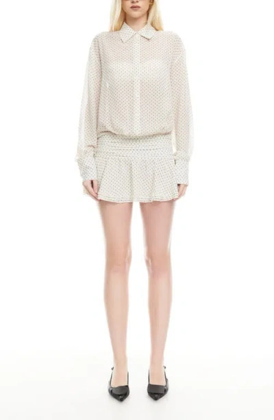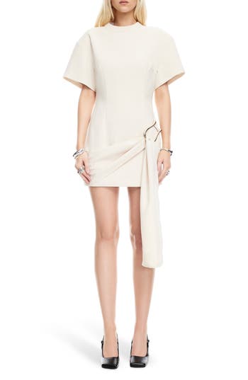 Bardot Ruched Waist Pleated Drop Hem Mini Dress In Neutral