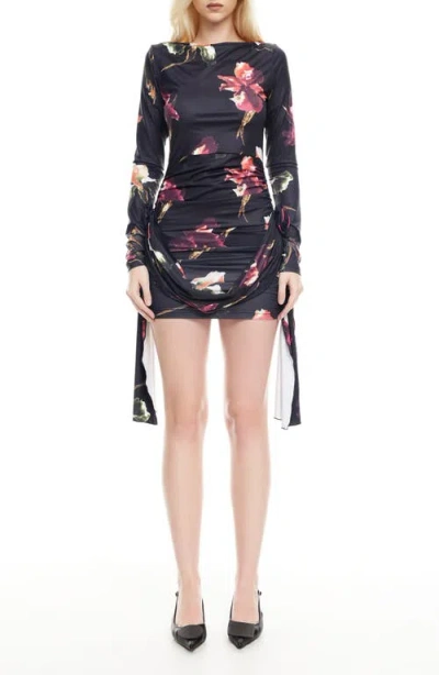 Safari Ruched Waist Drape Detail Asymmetric Midi Skirt Co-ord In Black