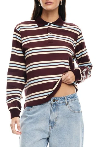 Leisure Long Sleeve Polo Top In Chocolate Multi