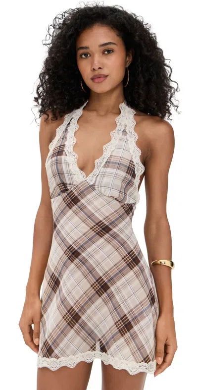 Stars Align Plaid Lace Trim Halter Minidress In Multi