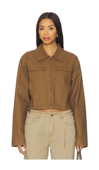 Awakening Crop Polo Cardigan In Chestnut Plain