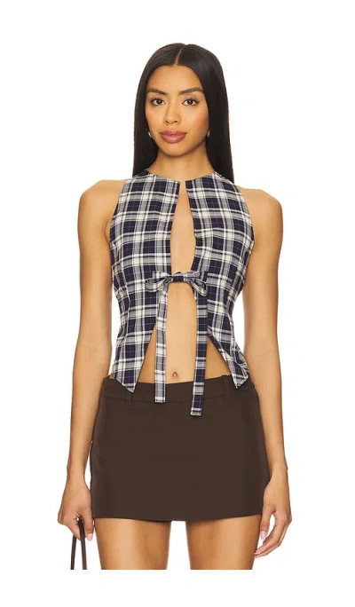Butterfly Tie Plaid Halter Top In Onyx Gingham