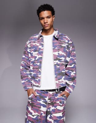 Liqour N Poker Relaxed Denim Zip Jacket In Multi