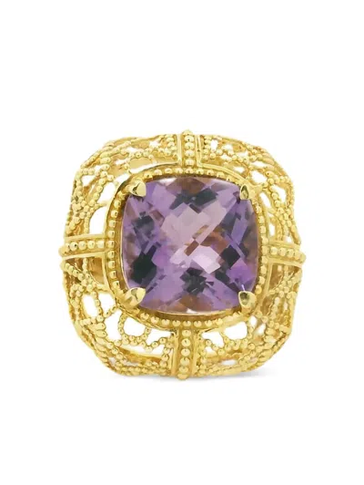18k Yellow Gold Sapphire And Amethyst Ring In Brown