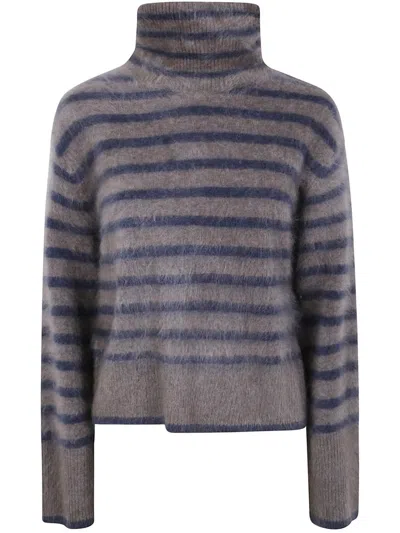 The Floren Brushed Striped Turtleneck Sweater In Gray