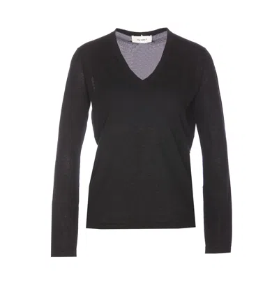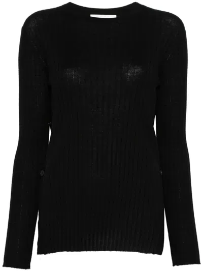 Soft Cashmere Knit Top With Asymmetric Seam Detailing In Black