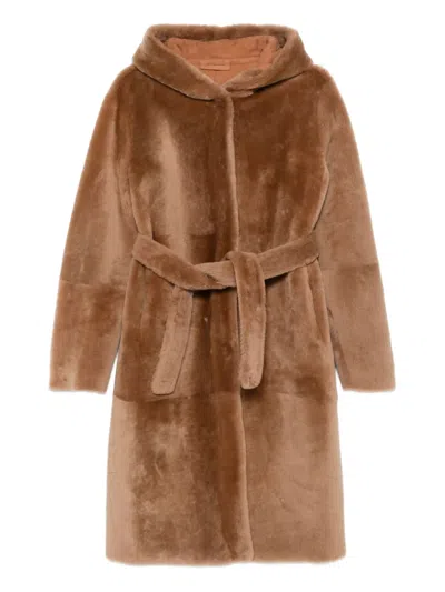 Single-breasted Shearling Coat In Brown