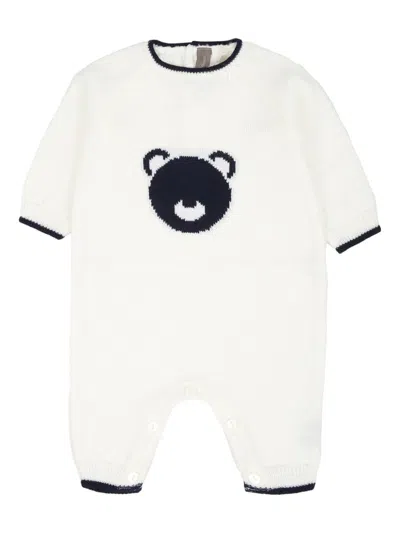 Babies' Bear-intarsio Knitted Jumpsuit In Neutral