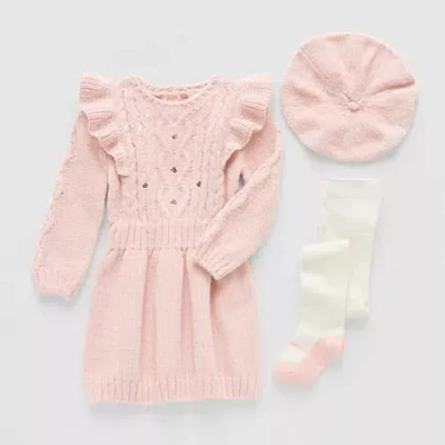 Baby Girls Long Sleeve Sweater Dress In Pink