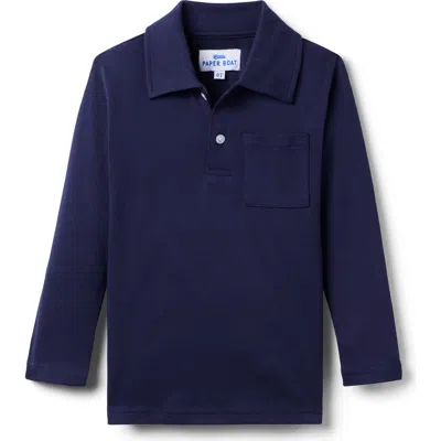 Kids Rhodes Golf Stripe Long Sleeve Polo In Blue