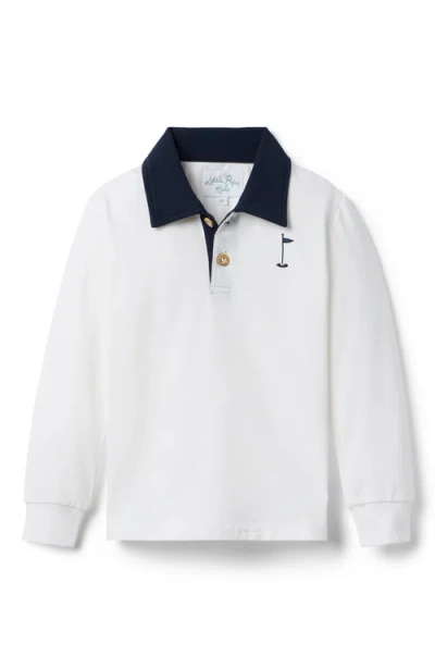 Kids Rhodes Golf Stripe Long Sleeve Polo In White