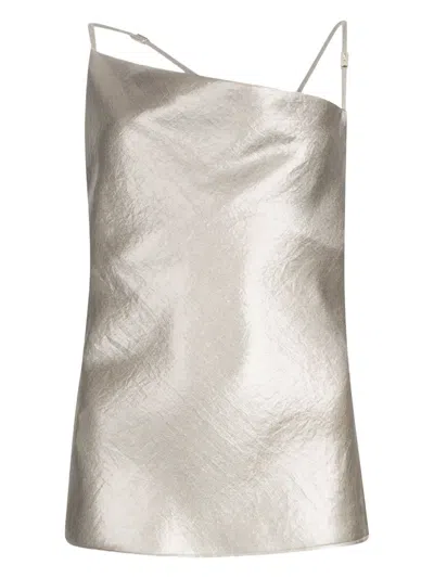 Laminated Crepe Top In Silver