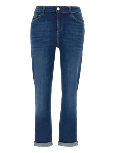 Liu Jo Logo Patch Straight Leg Jeans In Blue