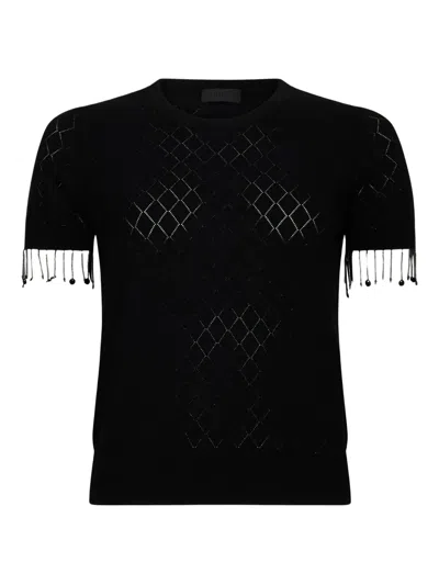 Liu Jo Sweater With Openwork Pattern And Beads In Black
