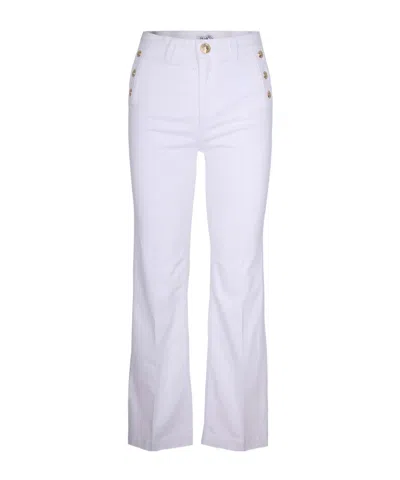 Jeans Flare In Denim Stretch Con Bottoni Bianco Ottico In White
