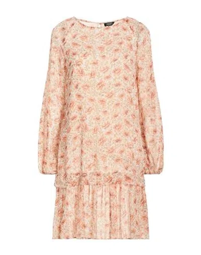 Woman Mini Dress Apricot Size 4 Polyester, Metallic Fiber In Orange