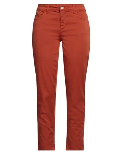 Woman Pants Rust Size 28w-28l Cotton, Elastane In Red