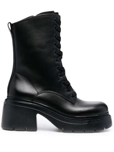 Amy Chunky Lace-up Boots In Schwarz