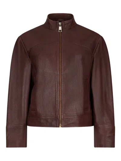 Laces Leather Jacket In Brown