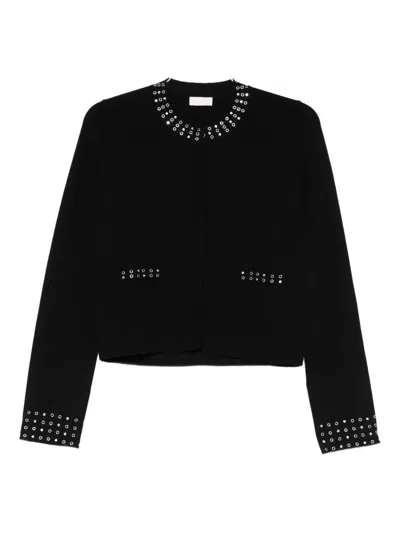 Eyelet-embellished Cardigan In Black