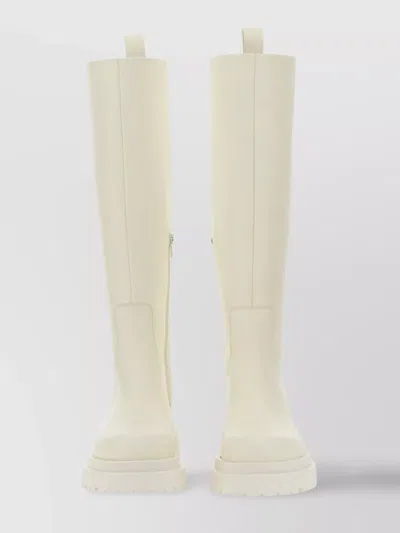 Chunky Sole Knee-high Leather Boots In White
