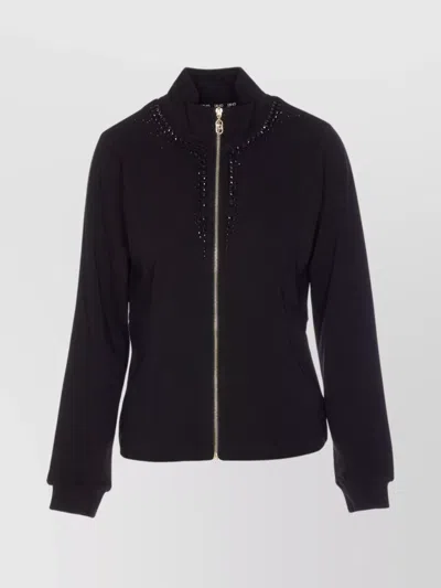 Schwarzes Sweatshirt Mit Strass Und Reissverschluss In Black
