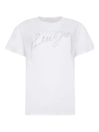 Weisser Rundhalspullover Mit Strasssteinen In White