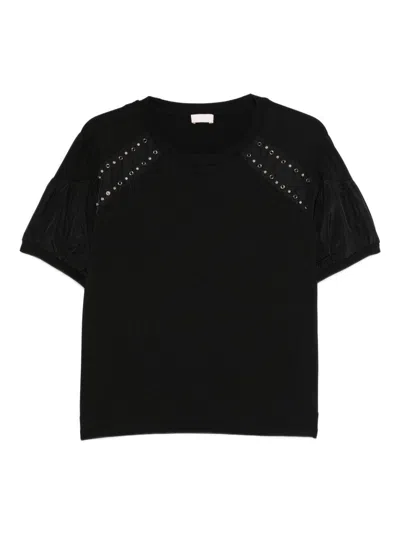Schwarzer Pullover Mit V-ausschnitt Und Kristallen In Black
