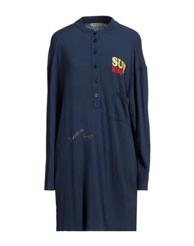 Woman Mini Dress Navy Size Xs Cotton, Linen In Navy Blue