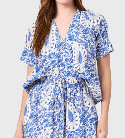 Collared Neckline Long Sleeves Dress In Blue Bouquet