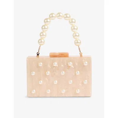 Womens Malia Pearl Resin Box Clutch Bag In White