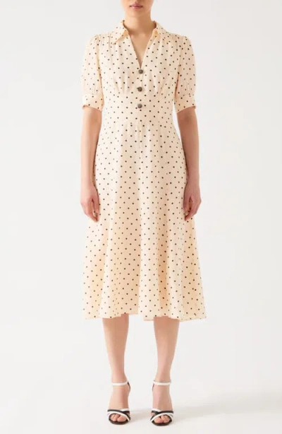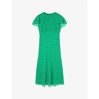 Womens Gre-bright Green Ellen Petite Polka-dot Short-sleeve Woven Midi Dress