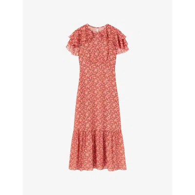 Womens Mul-pink Billie Blossom-print Ruffle-trim Silk-blend Midi Dress