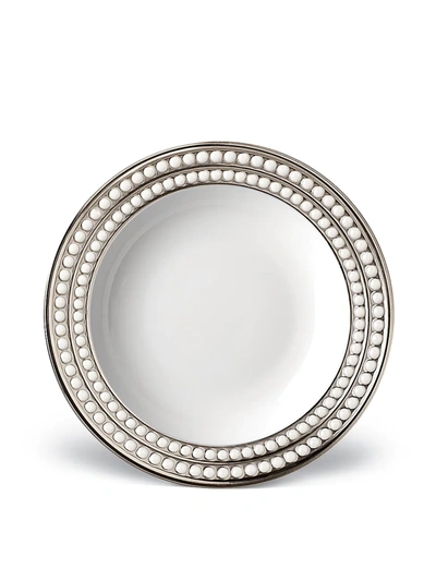 Perlee Porcelain And Platinum Soup Plate In Platinum/white