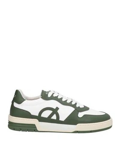 Unisex Atom Panelled Faux Leather Sneakers In White Green Cream