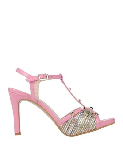 Woman Sandals Pink Size 8 Leather, Textile Fibers