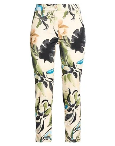 Woman Pants Beige Size L Cotton, Elastane In Multi