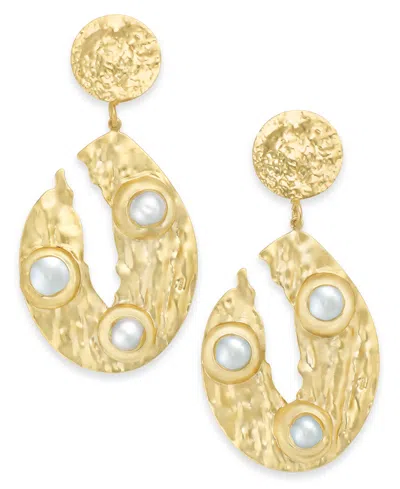 18k Gold-plated Sterling Silver Hammered Imitation Pearl Drop Earrings