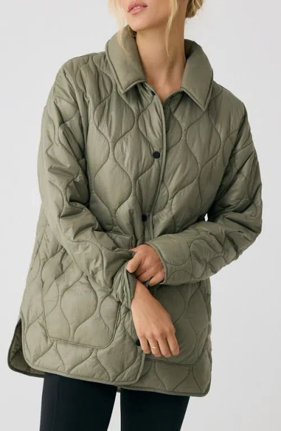 The Quilted Water Repellent Nylon Shacket In Hazel